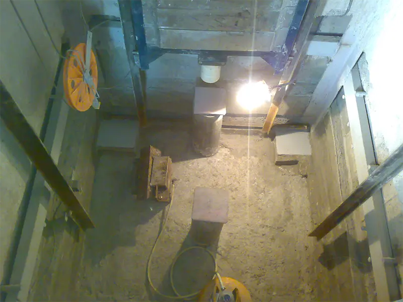 ترک ها و نقاط ضعف در دیواره ها و کف چاله آسانسور باید تعمیر شوند. این اقدام ممکن است با استفاده از مواد تعمیری مخصوص یا سیمان و ملاقه کاری انجام شود.
